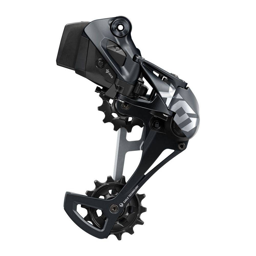 Het is een geheel nieuwe derailleur die speciaal is ontworpen en geoptimaliseerd om door een motor te worden aangedreven in plaats van door een kabel. AXS-aangedreven componenten maken aanpassing en schaal mogelijk naar de wens van een individuele rijder via de AXS-app. Het heeft een kortere kooi voor 10 mm meer bodemvrijheid, met meer kettingomslag op de cassette om iets verder naar voren te zitten, en verder naar binnen van mechanische Eagle. De Eagle AXS derailleur is slim genoeg om zichzelf te beschermen dankzij de ongelooflijk veerkrachtige Overload Clutch. In het geval van een botsing wordt de motorversnellingsbak ontkoppeld, waardoor de derailleur vrij kan bewegen en onmiddellijk terugkeert naar zijn positie voor een naadloze ervaring voor de rijder. Het systeem is getest volgens de IP69K water- en stofdichtheidsnorm voor kreekovergangen, modderspatten en de resulterende hogedrukreinigingen na de rit.