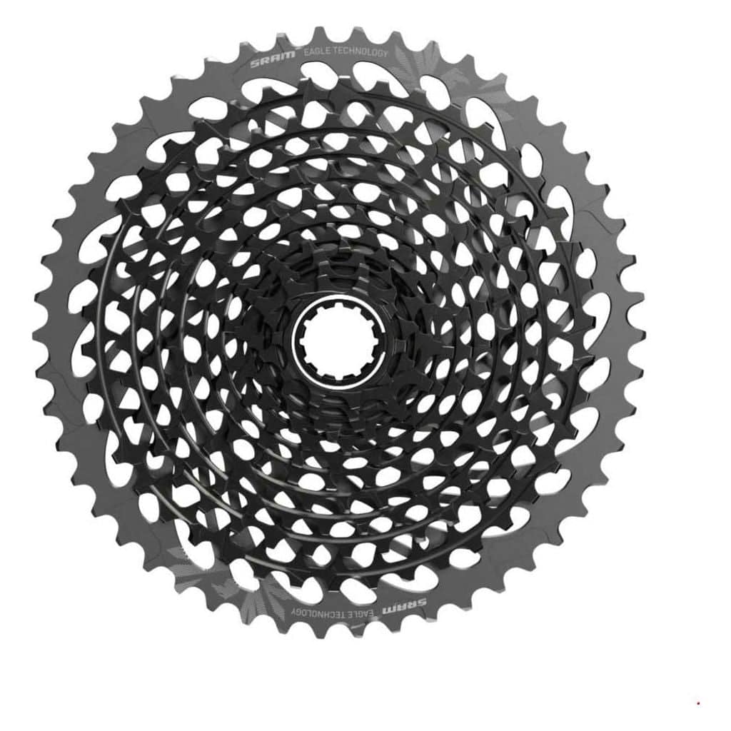 De X-DOME™ Eagle™-cassette. Deze cassette met 12 versnellingen en 10 tot 50 tanden is ontworpen voor gebruik met onze bewezen, betrouwbare XD™-driverbody en biedt een optimaal versnellingsbereik van 500 procent bij een aanzienlijk lager gewicht dan 2x-systemen. Het draagt de X-DOME™-architectuur met zich mee, die, volgens onafhankelijke tests, de sterkste cassettes op de markt oplevert. Nieuwe schakeleigenschappen verbeteren zowel het binnen- als buitenboord schakelen, evenals het vasthouden van de ketting. Deze cassette komt qua prestaties en kleur perfect overeen met X01 Eagle AXS™-compatibele componenten.