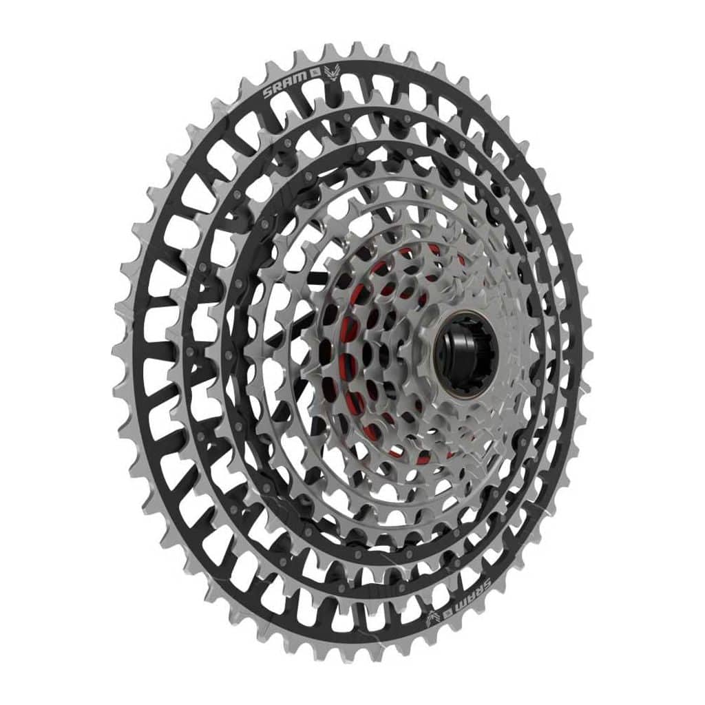 De XX SL Eagle Transmission (T-Type) cassette is een belangrijke reden waarom Eagle Transmission de beste schakelprestaties onder belasting biedt. Dankzij het volledige X-SYNC-ontwerp schakelt de cassette beter naarmate er harder wordt getrapt. Dit is de lichtste Eagle cassette in de geschiedenis en daarnaast de meest nauwkeurige en duurzame. De nieuwe generatie heeft een volledig bewerkte, gehard stalen X-Dome architectuur voor de versnellingen 1-9 en een ultralicht, geheel aluminium Spider Cog voor de versnellingen 10-12.