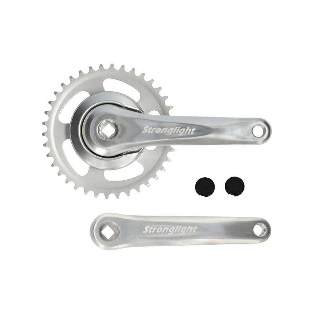 Het Stronglight Earth crankstel is ontworpen voor fietsen met een enkelvoudig versnellingssysteem (1V) en heeft een cranklengte van 170 mm. Het is vervaardigd uit aluminium en heeft een tandwielgrootte van 38T. De asdiameter is 92 mm, met een offset van -4 mm. De zilveren kleur voegt een klassieke uitstraling toe aan je fiets.