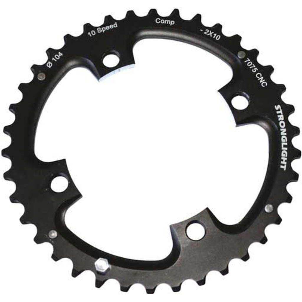 Het Stronglight ATB-kettingblad, geschikt voor Shimano crankstellen, is vervaardigd uit Zicral en geschikt voor 10-speed aandrijvingen. Met een tandwielgrootte van 38T en een steek van 104 biedt het optimale prestaties en duurzaamheid. De zwarte kleur voegt een stijlvolle uitstraling toe aan je fiets.
