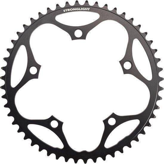 Het Stronglight kettingblad van het type S met een steek van 130 mm en een tandwielgrootte van 46T is geschikt voor 9/10-speed aandrijvingen. De zwarte kleur voegt een stijlvolle uitstraling toe aan je fiets, terwijl het ontwerp zorgt voor optimale prestaties en duurzaamheid.