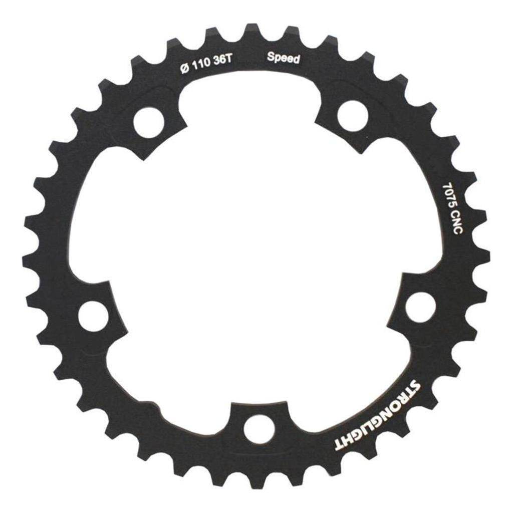 Het Stronglight kettingblad, Type S Zicral, is compatibel met Shimano, SRAM en FSA crankstellen en geschikt voor 9/10-speed aandrijvingen. Met een tandwielgrootte van 36T en een steek van 110 biedt het optimale prestaties en duurzaamheid. De zwarte kleur voegt een stijlvolle uitstraling toe aan je fiets.
