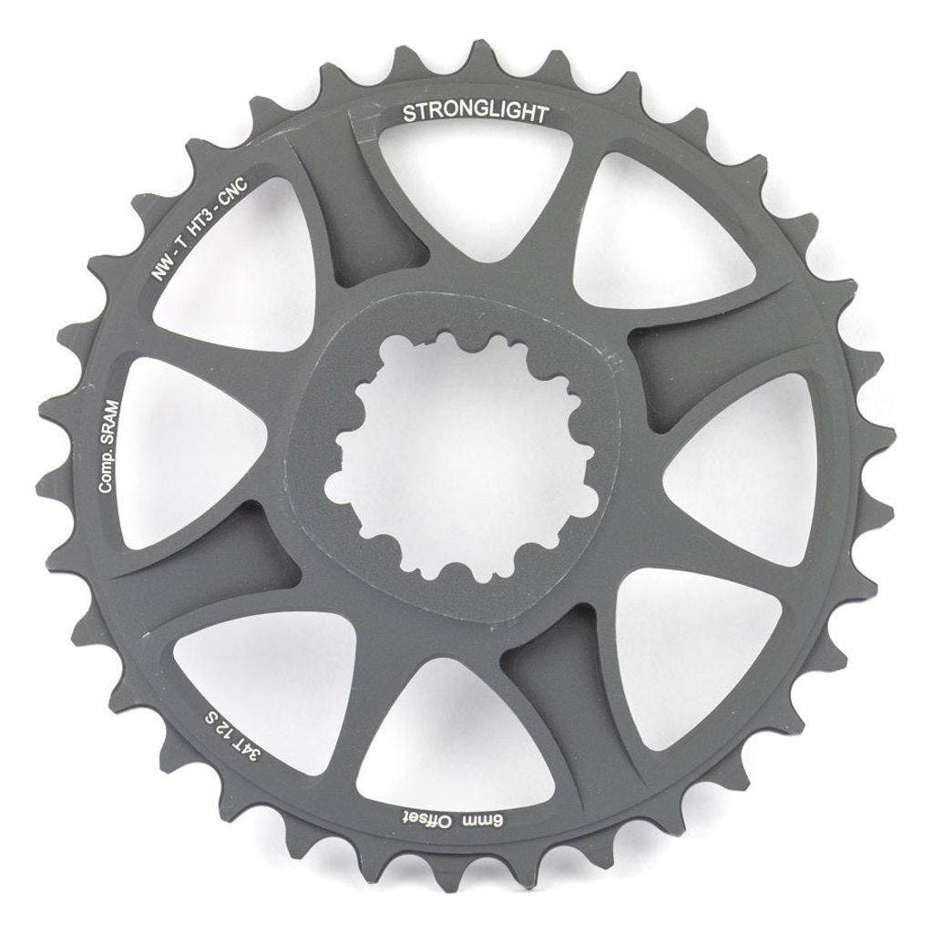 Het Stronglight kettingblad, geschikt voor XX1/X01 Eagle crankstellen, is ontworpen met HT3 Direct Mount en een offset van 6mm. Dit kettingblad heeft een tandwielgrootte van 34T en is geschikt voor 12-speed aandrijvingen. De zwarte kleur voegt een stijlvolle uitstraling toe aan je fiets.