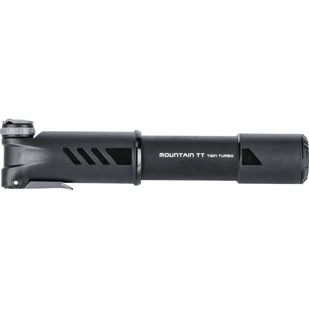 Mountain TT Twin Turbo-pomp vult zowel grote fatbike banden als hogere druk MTB-banden en gravelbikes met gemak. DeTwinTurbo-technologie gebruikt beide slagen om de lucht te persene om hoge druk te produceren. Geintegreerde stofkap houdt de pompkop schoon en de vergrendelingshendel zorgt voor een luchtdichte afdichting.
