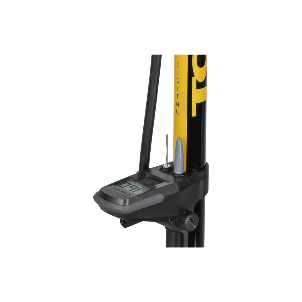 Topeak Voetpomp JoeBlow Sport Digital. Een goed afleesbare drukmeter is midden op de pompbuis geplaatst en geeft nauwkeurig de bandenspanning weer tot een maximale druk van 160 psi/11 bar. De hamervormige TwinHead DX5 pompkop heeft een extra lange slang die niet in de knoop raakt en genoeg lengte biedt om elk ventiel te bereiken. Dankzij de solide stalen pompbuis, brede stalen pompvoet en ergonomisch gevormd handvat kun je in een handomdraai je banden op spanning zetten. Gewicht: 1,8Kg. Volume per slag: 318CC. Afmeting: 68x25,4x18cm. Materiaal: Staal. Capaciteit: 160 psi - 11 bar. Unit: psi, bar, kg/cm2. Kleur: Geel. TJB-PRO-DG