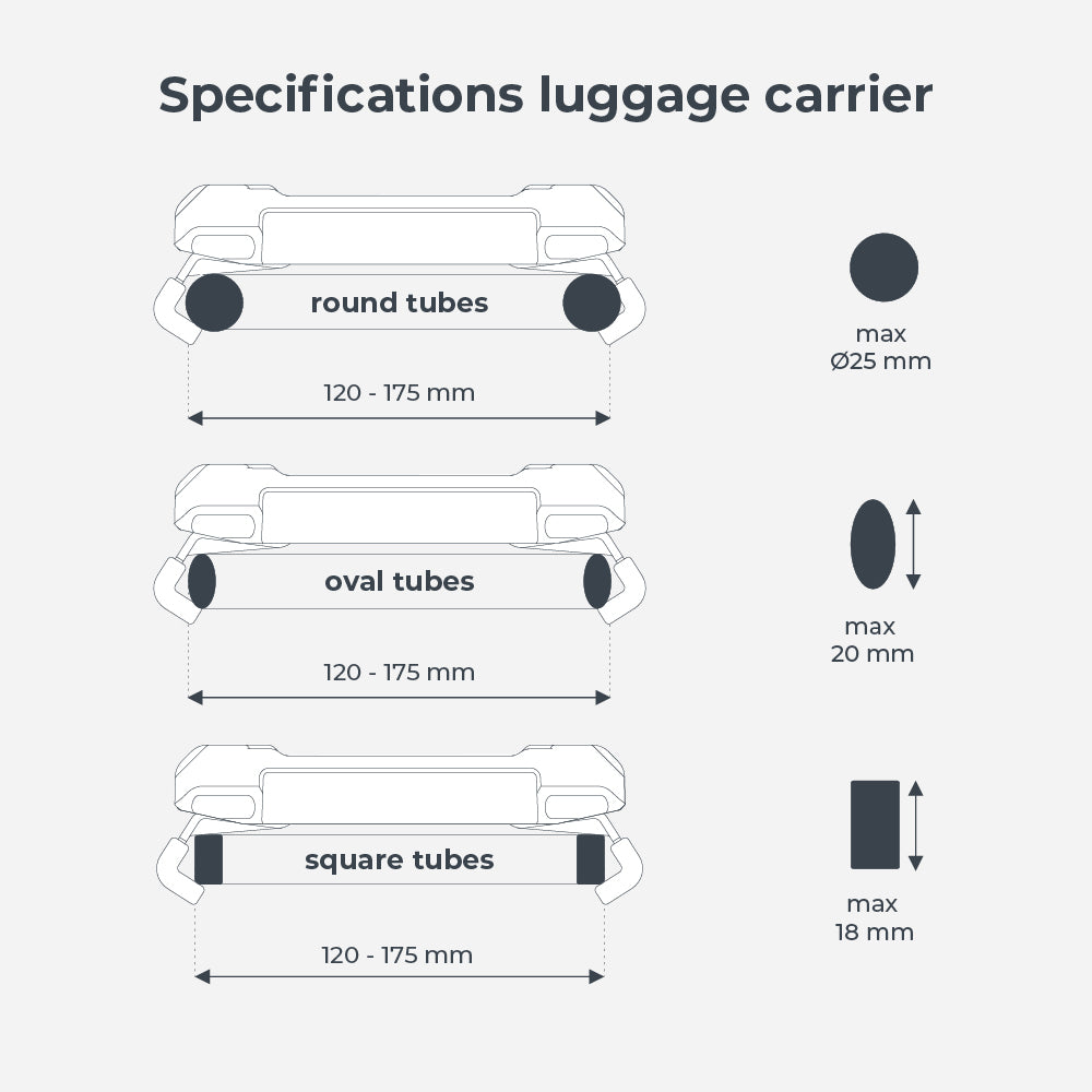 - Click & go achterdrager bevestiging, 120-175 mm breed