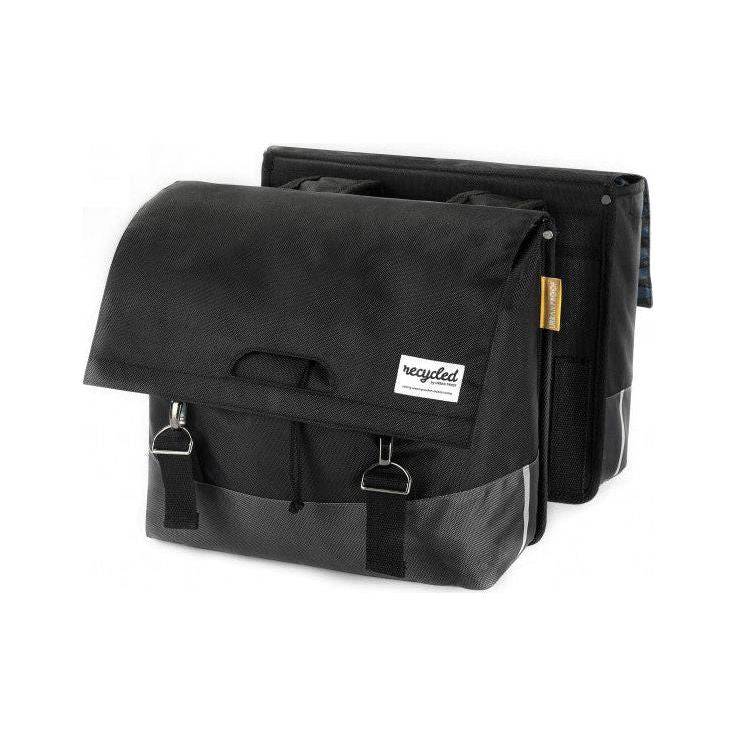 Urban Proof 40L dubbele fietstas is een sterke tas met een verstevigde rug en bodem, gemaakt van gerecycled PET materiaal (RPET). De tas heeft twee ruime opbergvakken met een totale inhoud van 40 liter. Hij is zo gemaakt dat je snel en eenvoudig de tas kan openen en sluiten met de chromen haken. De tas is gemaakt van waterafstotend RPET en heeft aan de binnenkant een waterbestendige voering als extra bescherming voor jouw spullen. Met de daarvoor bestemde riempjes is de dubbele fietstas eenvoudig aan jouw bagagedrager te bevestigen. • Materiaal: waterafstotend RPET • Afmetingen: 38,5 x 15 x 31 • Inhoud: 40 liter