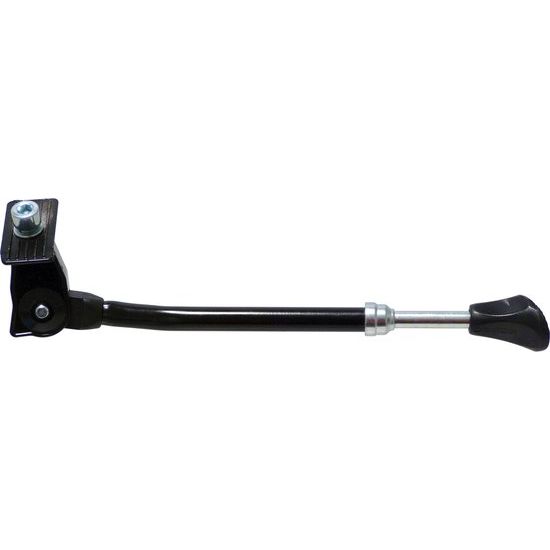 Maat: 24-26" Kleur: zwart Materiaal: staal Lengte arm (vanaf hart draaipunt tot onderkant): 26 cm Dikte: 14 mm Type: enkel Verstelbare standaard Afmeting montageplaat: 29 x 55,4 mm Gewicht: 175 gram Inclusief bevestigingsbout en revet Gemakkelijke bevestiging achter de trapas Geschikt voor kinderfiets Hoge stabiliteit Extra sterke standaard