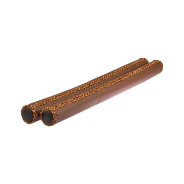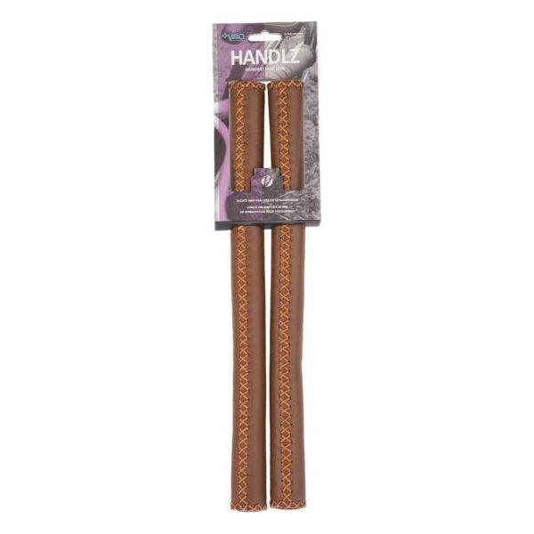 Hoogwaardige lederen handvatten van Velo. Lengte: 40 cm Binnendiameter: 22,2 mm (standaard stuurmaat) Zacht en soepel leer Blijft koel en is vochtregulerend Gevuld met zacht schuim wat trillingen absorbeert 139 gram
