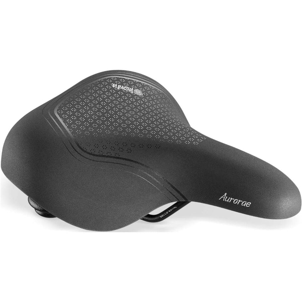 De Aurorae is een zadel dat geschikt is voor een Relaxed fietspositie, met het comfort van een zacht zadeldek met onze Slow Fit Foam technologie, een traagschuim dat zich aanpast aan het lichaam en voor een gelijkmatige gewichtsverdeling zorgt. Dankzij de unieke langzaam herstellende eigenschap biedt dit traagschuim een voortreffelijk zitcomfort. Het traagschuim vormt zich naar de lichamelijke contactpuntenen creeert een gelijkmatige gewichtsverdeling met behoud van effectieve ondersteuning. De elastomers absorberen zelfs de meest heftige en onverwachte schokken, en werken zowel verticaal als horizontaal, voor een veilige, geruisloze en onvervormbare prestatie. Het gepatenteerde clip systeem aan de achterkant van het zadel maakt het heel gemakkelijk om een Selle Royal zadeltasje of ander accessoire aan te brengen