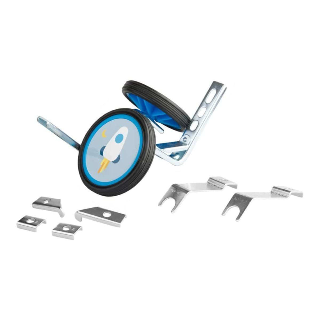 Leer makkelijk fietsen met deze in hoogte verstelbare zijwielen. De wielen zijn van kunststof met een masieve band van rubber. De beugels en de bevestigingsmaterialen zijn van staal. Op het wiel kan een Unicorn sticker of een Panda sticker geplakt worden. Deze set bevat meerdere bevestigingen en is daardoor geschikt voor vrijwel alle kinderfietsen. Bevat een Rocket en een Tiger stickerset Geschikt voor vrijwel alle kinderfietsen Geschikt voor wielmaat 12 14 16 18 20 Inclusief bevestigingsaterialen Inhoud doos: Montagehandleiding 2 wielen (links en rechts) 2 beugels (links en rechts) 2 stickersets (Rocket en Tiger)